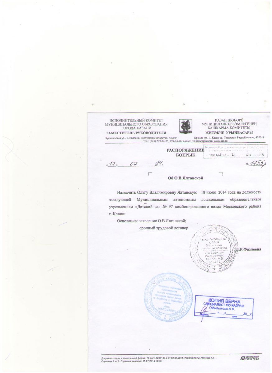 Приказ о назначении руководителя МАДОУ№97