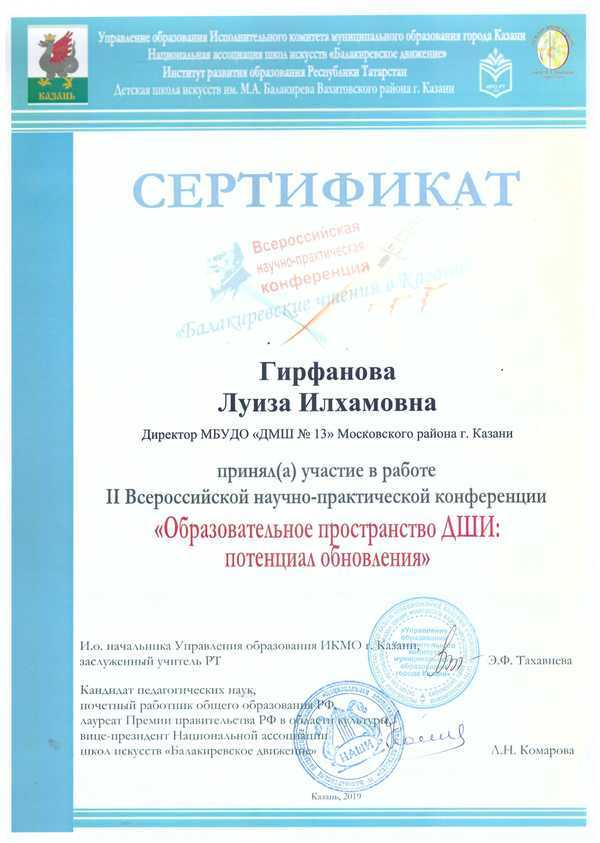 Научно-практическая конференция "Балакиревские чтения" Сертификат Сертификат директора