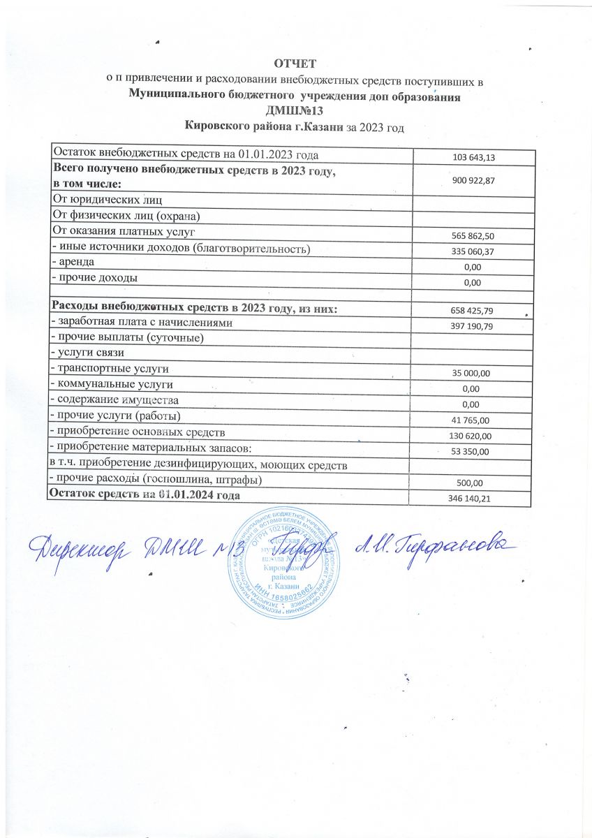 Отчет о привлечении и расходовании внебюджетных средств, поступивших в 2023 году