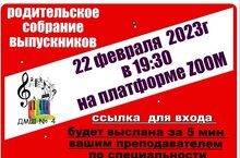 Родительское собрание выпускников состоится 22 февраля 2023 года в 19.30 на платформе ZOOM
