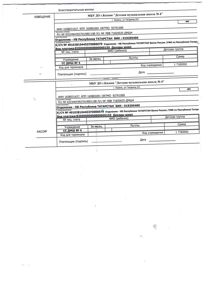Положение о порядке формирования и использования целевых вхносов, добровольных пожертвований юридических и физических лиц в детской школе искусств по видам искусств /upload/storage/org5622/files/Добровольные пожертвования.docx Квитанция /upload/storage/org5622/files/скан кватанции.jpeg