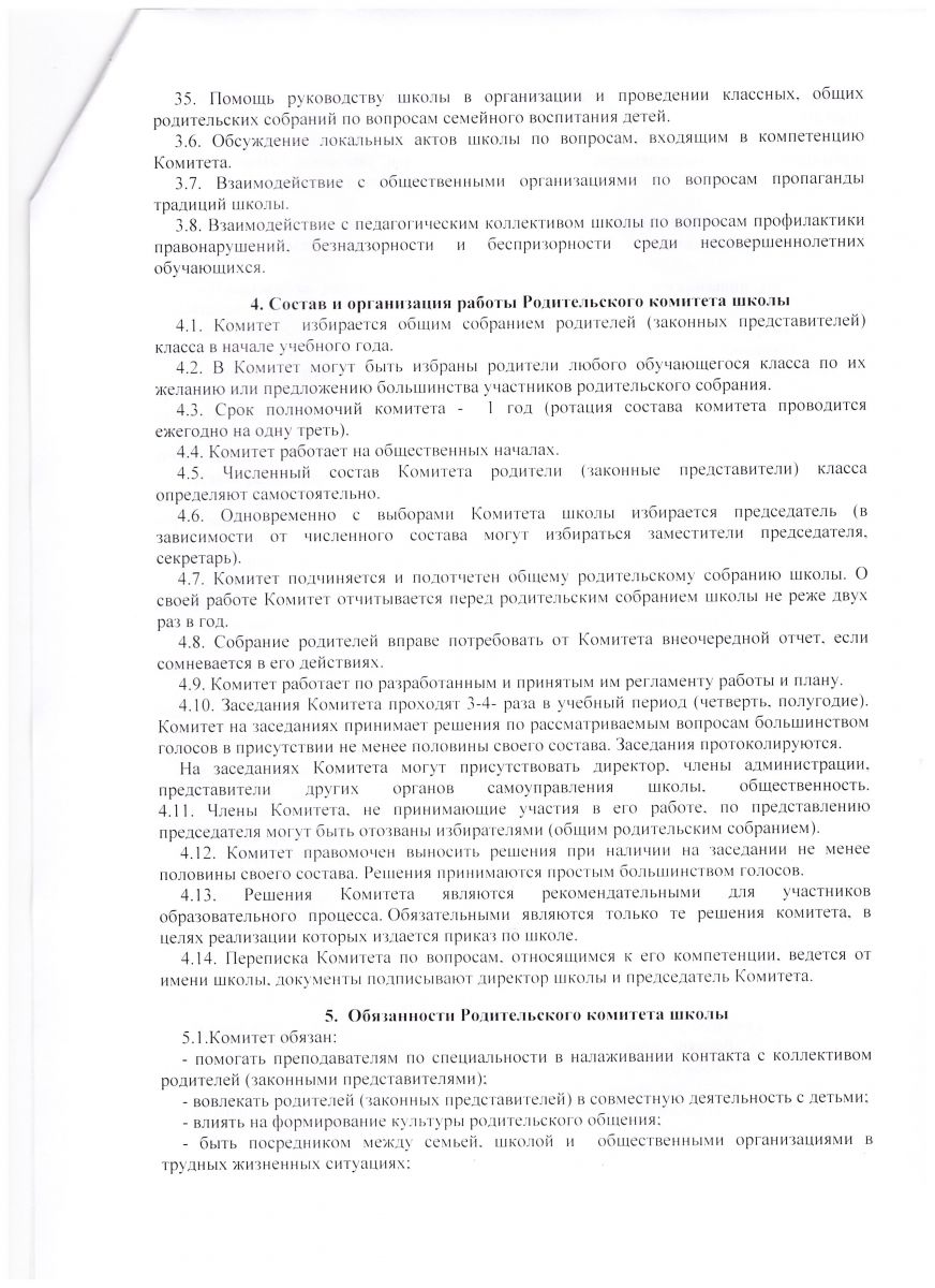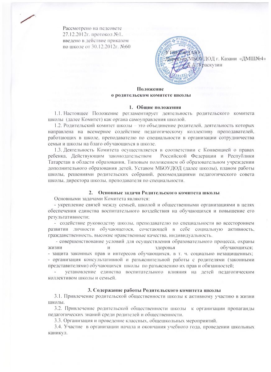 Положение о родительском комитете школы