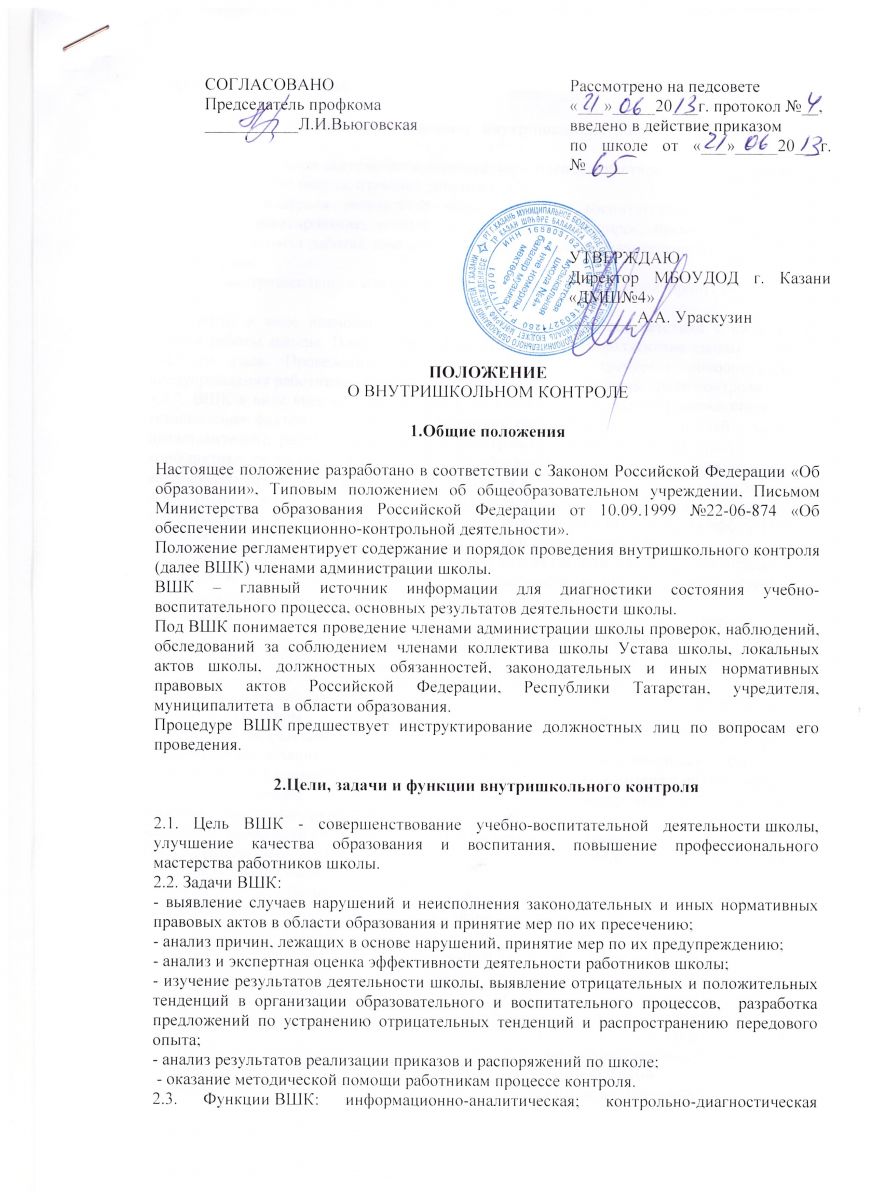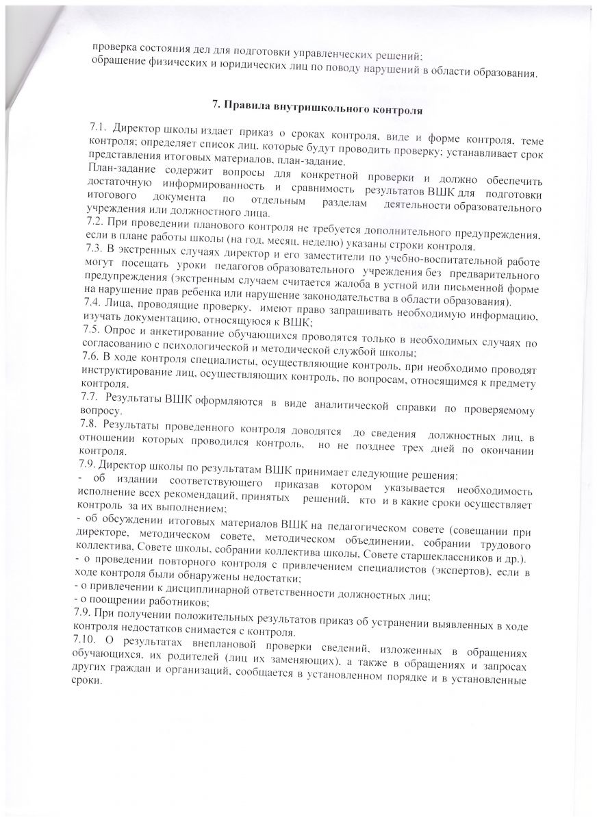 Положение о внутришкольном контроле