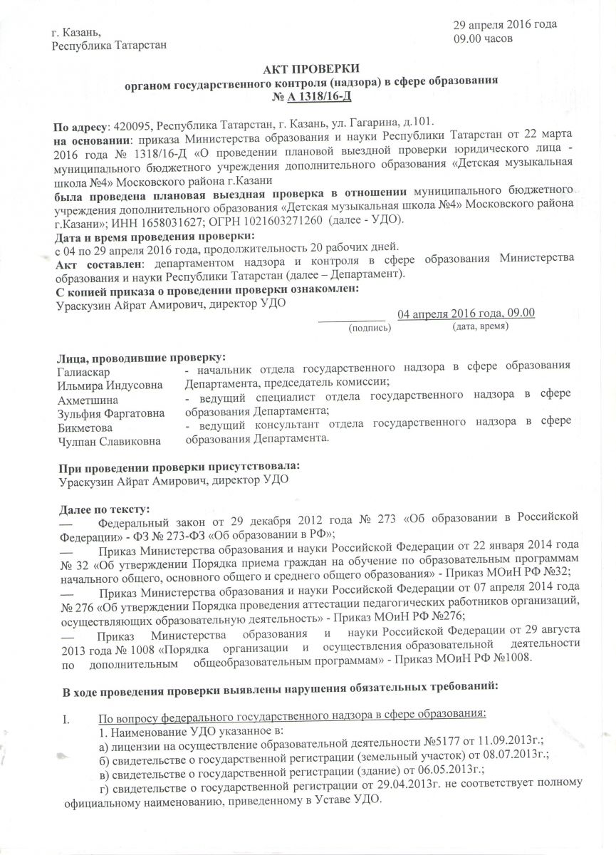Акт проверки органом гос.контроля (надзора) в сфере образования: