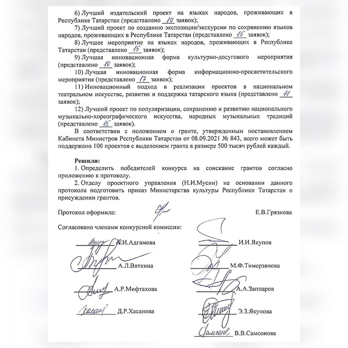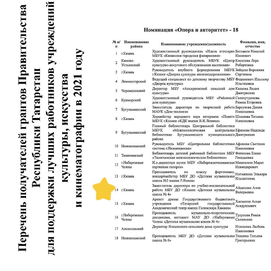 Грант Правительства Республики Татарстан для поддержки лучших работников и учреждений культуры, искусства и кинематографии.