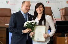 Награждение победителя Республиканского смотра-конкурса "Лучший детский тренер спортивной школы - 2014" в номинации "Массовость" Самойловой Анны Юрьевны. 30.01.2015