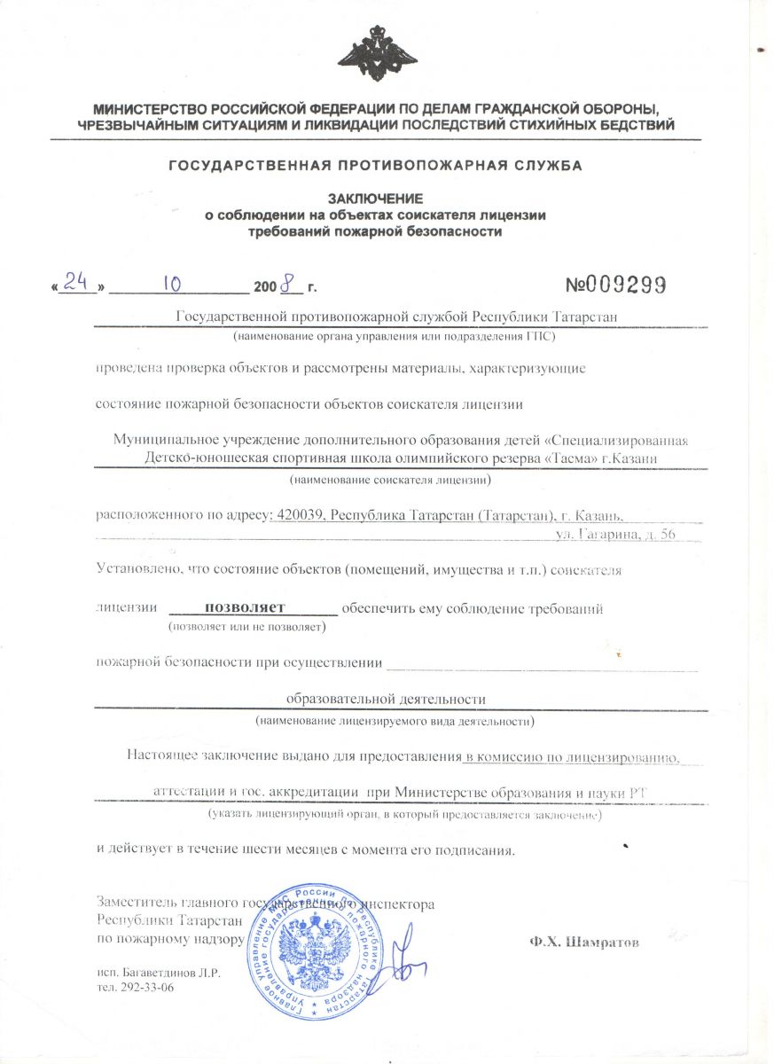 Заключение о соблюдении пожарной безопасности