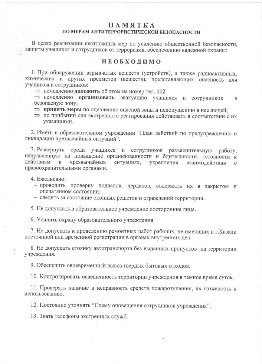 Памятка по мерам антитеррористической безопасности
