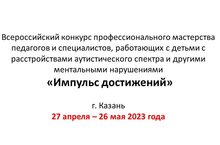 Приглашаем Вас принять участие в Всероссийском конкурсе профессионального мастерства педагогов и специалистов, работающих с детьми с расстройствами аутистического спектра и другими ментальными нарушениями, «Импульс достижений»