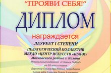 2. За вклад в развитие культуры педагог Ландыш Камиловна Фаттахова и методист Виктор Валерьевич Щедин были удостоены Почетной грамоты Министерства культуры Республики Татарстан.