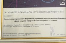 7 февраля на Республиканском совещании директоров учреждений дополнительного образования оргкомитет олимпиады кружкового движения нти "junior" благодарит коллектив Центра искусств "Шарм" за помощь в проведении финала олимпиады кружкового движения.