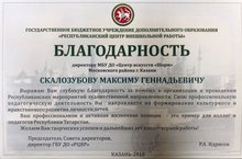 Директору Центра искусств "Шарм" Скалозубову М.Г вручили благодарственное письмо за помощь в организации и проведении Республиканских мероприятий художественной направленности.