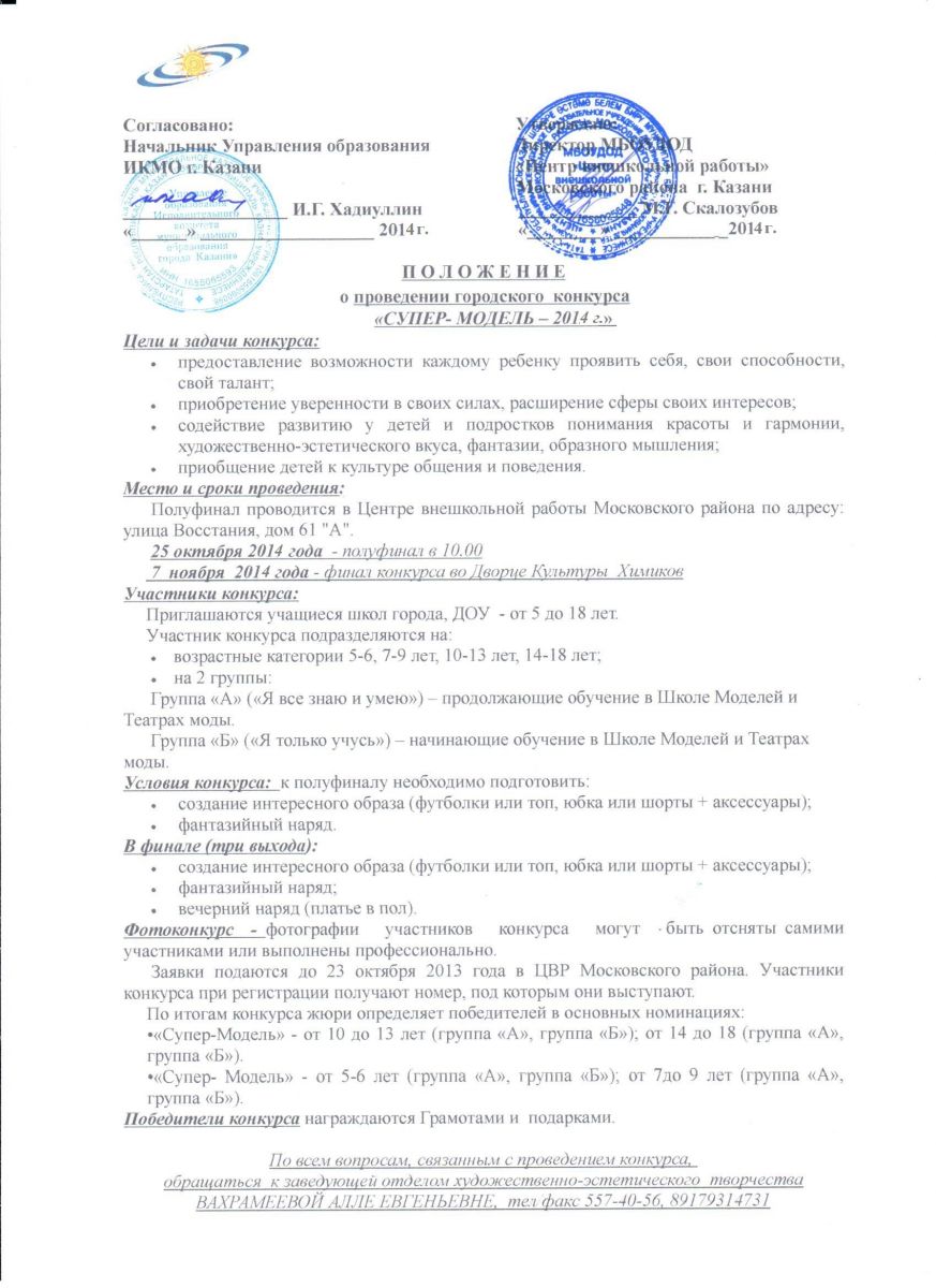 Положение о проведении городского конкурса "Супер - Модель 2014"