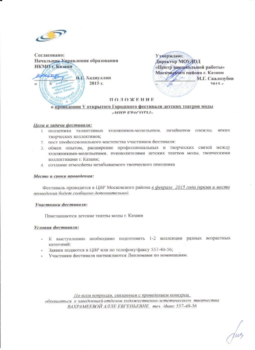 Положение Открытого городского фестиваля театров моды "Мир красоты-2015"