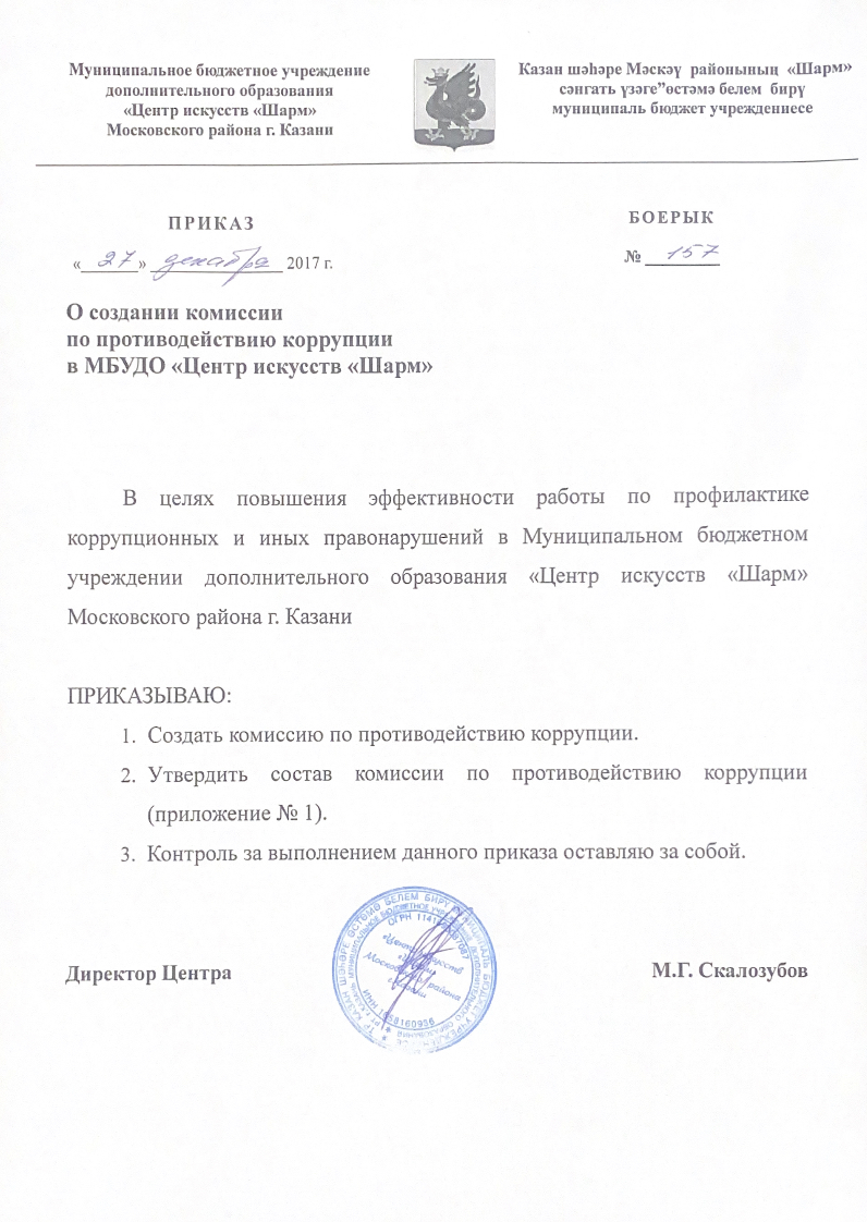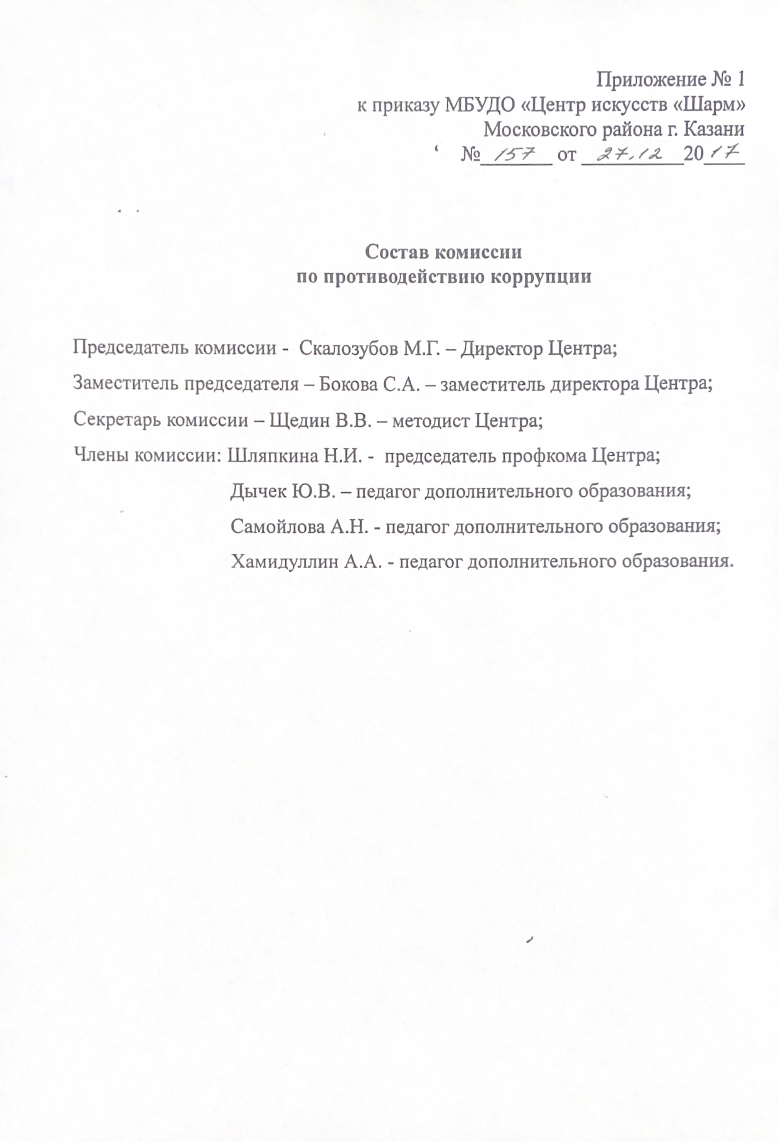 Приложение №1 к приказу о создании комиссии по противодействию коррупции