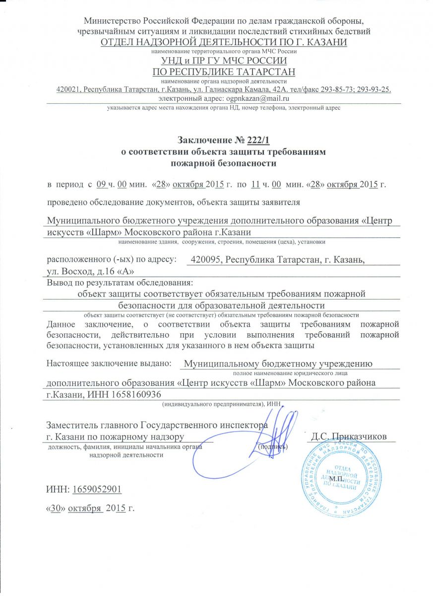 Заключение о соответствии объекта защиты требованиям пожарной безопасности