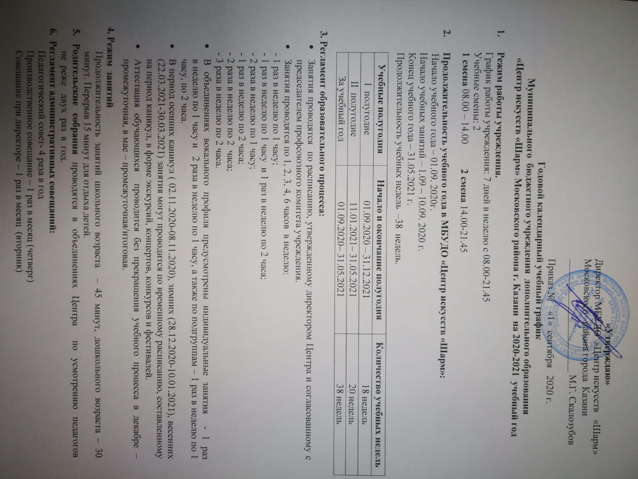 Годовой календарный учебный график на 2020-2021 год