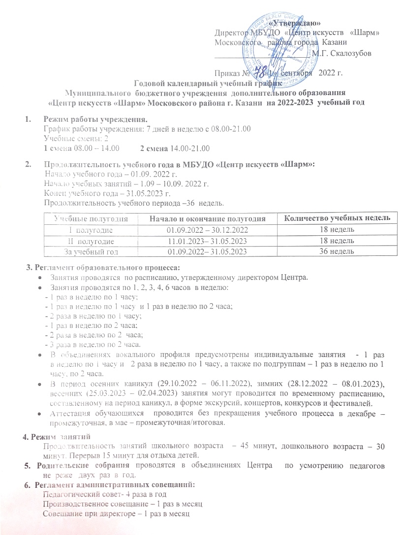 Учебный график на 01.09.2022 г