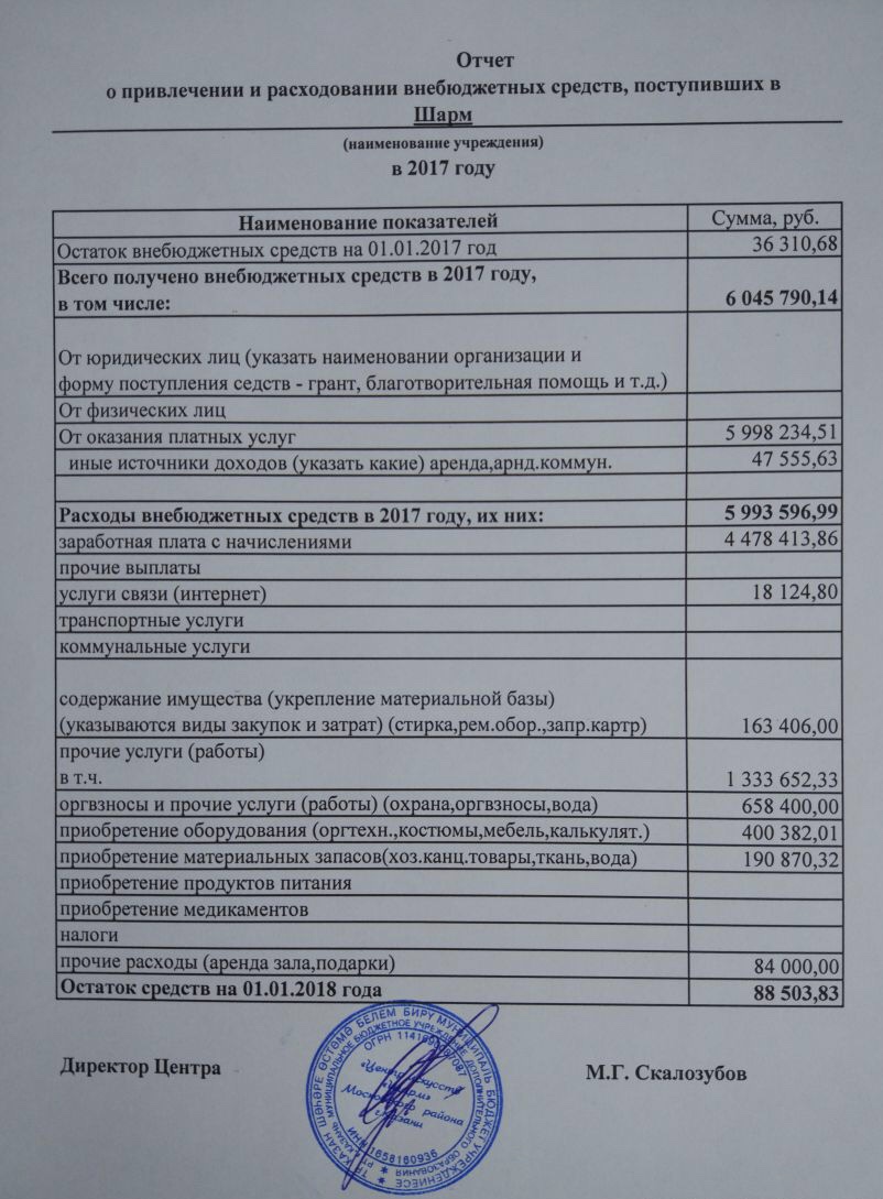 Отчет о привлечении и расходовании внебюджетных средств за 2017 год