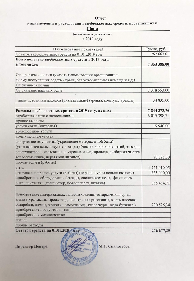 Отчет о привлечении и расходовании внебюджетных средств за 2019 год