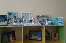 На втором этаже детского сада, проходит выставка объёмных рисунков "Зимушка хрустальная".