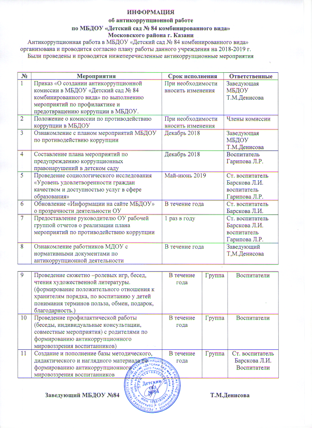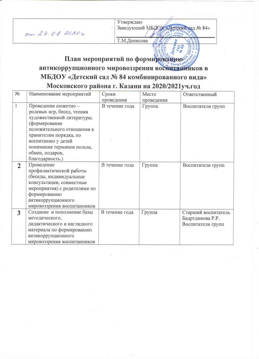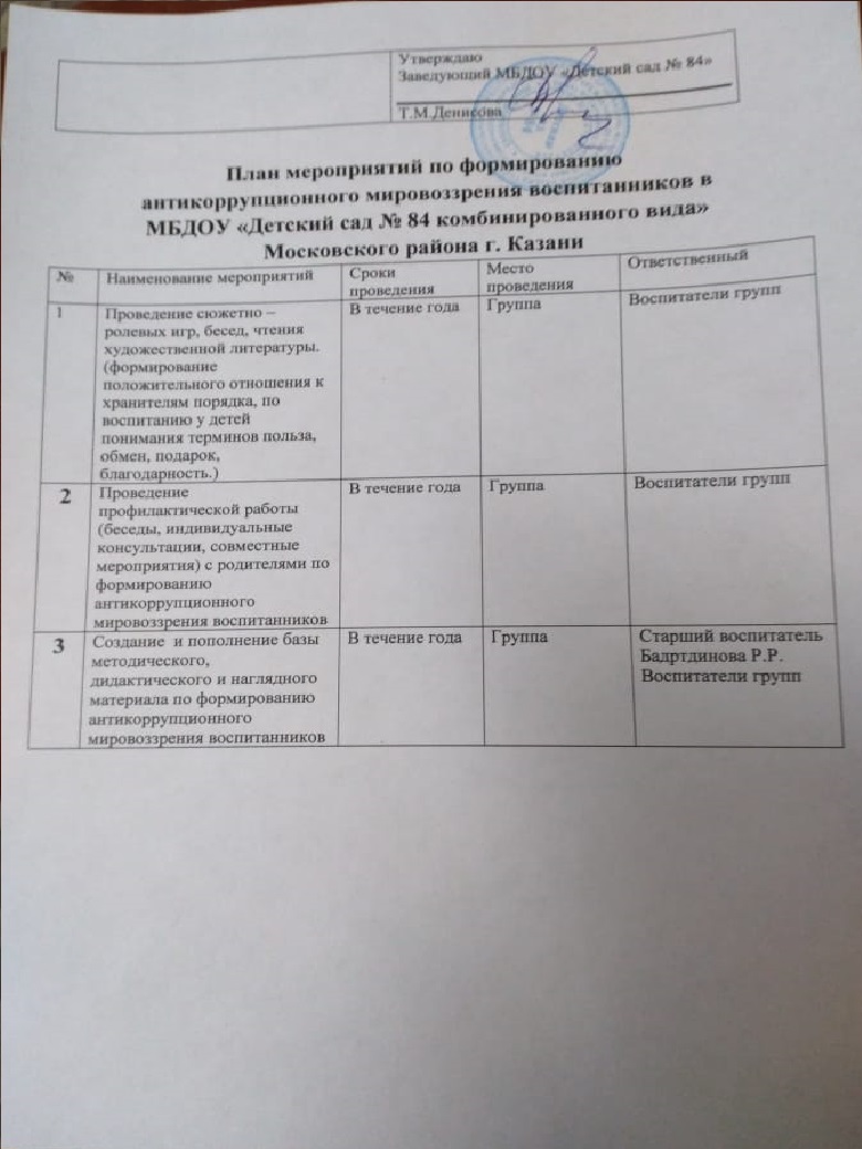 Антикоррупционная деятельность в МБДОУ №84 на 2019-2020 г.