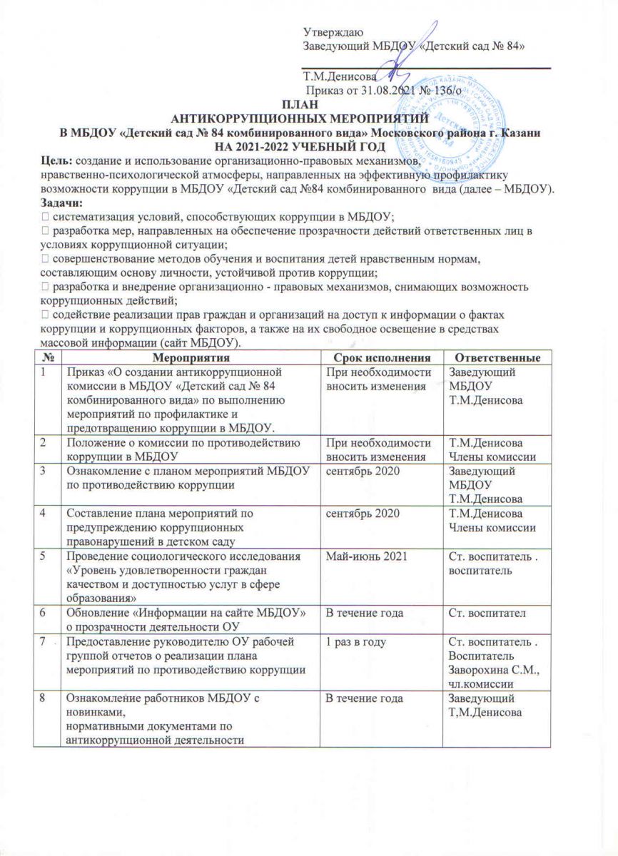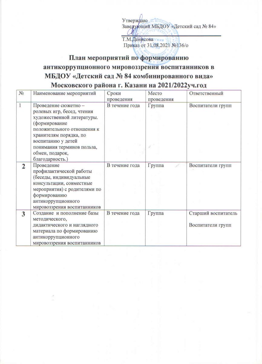 План антикоррупционных мероприятий в МБДОУ № 84 на 2022-2023 уч.год