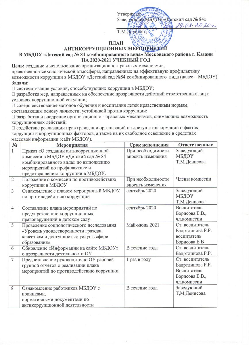 План антикоррупционных мероприятий в МБДОУ № 84 на 2023-2024 уч.год
