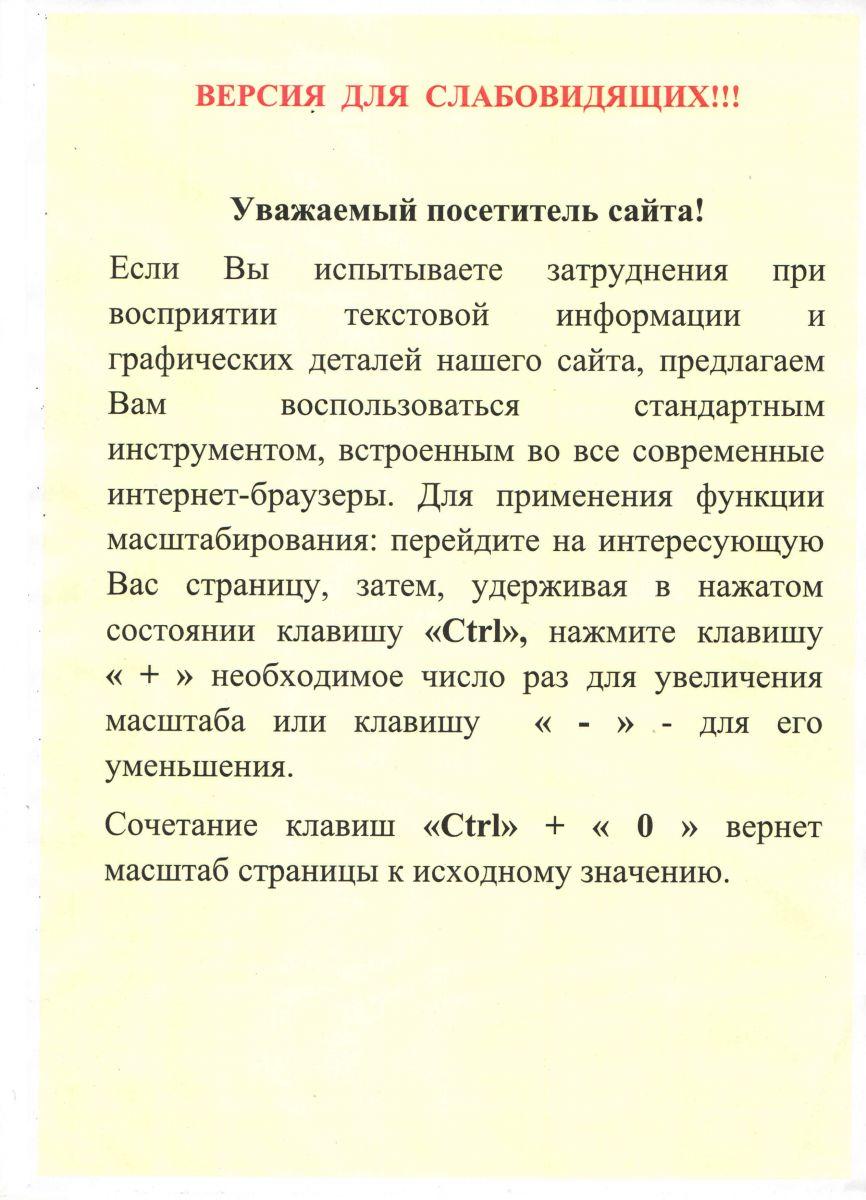 Стандартные инструменты для пользования сайтом, для слабовидящих