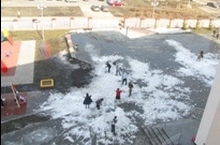 В гимназии начался месячник очистки территории. Сейчас у нас красивый двор, прекрасная спортивная площадка и даже озеро имеется. А осенью на клумбы высадили тюльпаны! Мы начали очищать их от мусора и снега. Вышли на уборку - ученицы, учителя. Родители, которые пришли за своими дочками, тоже нам помогли. Мы дружно поработали. А сколько еще осталось сделать!?
