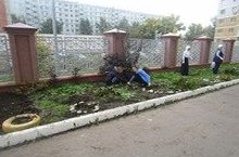Сегодня учащиеся и родители гимназии привели в порядок клумбы, закрепленные за классами, и очистили территорию вокруг озера.