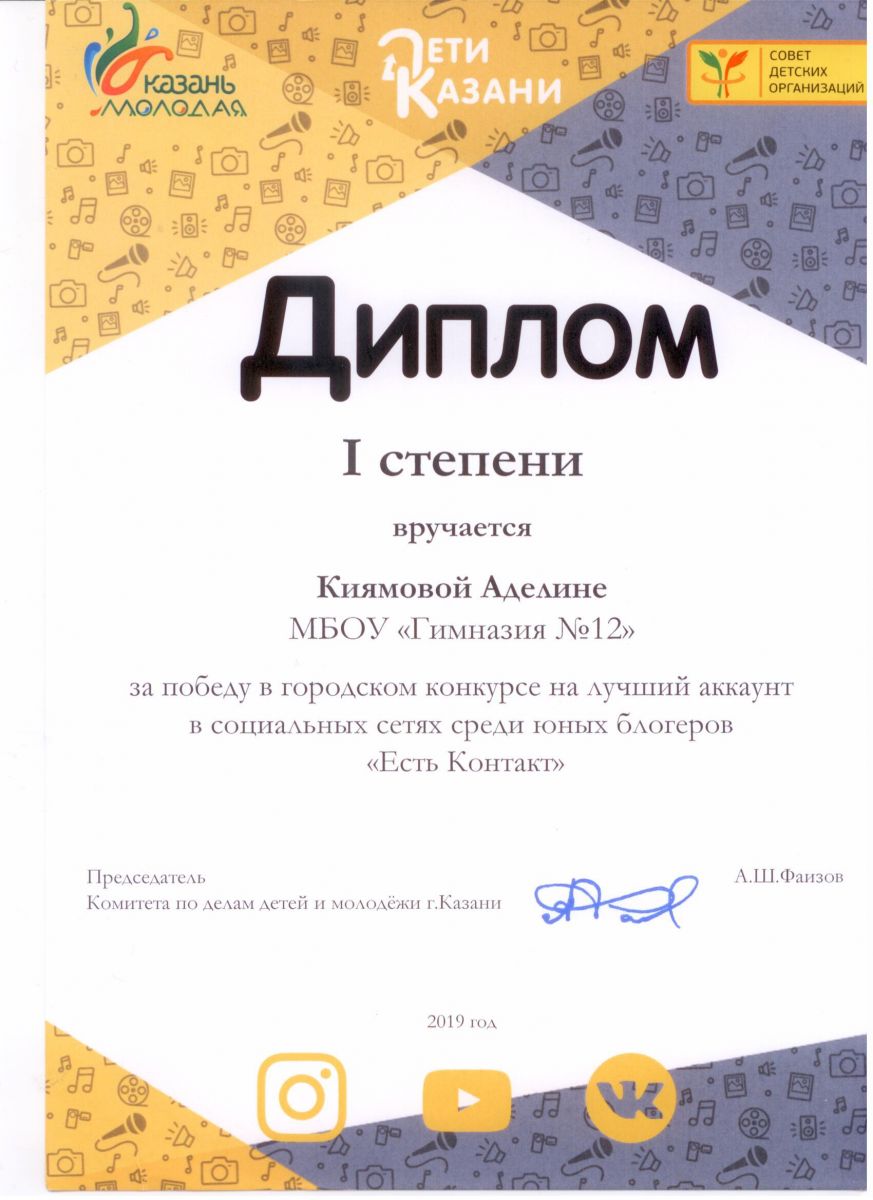 - Городской конкурс юных блогеров "Есть контакт"/ Киямова Аделина - 1 место