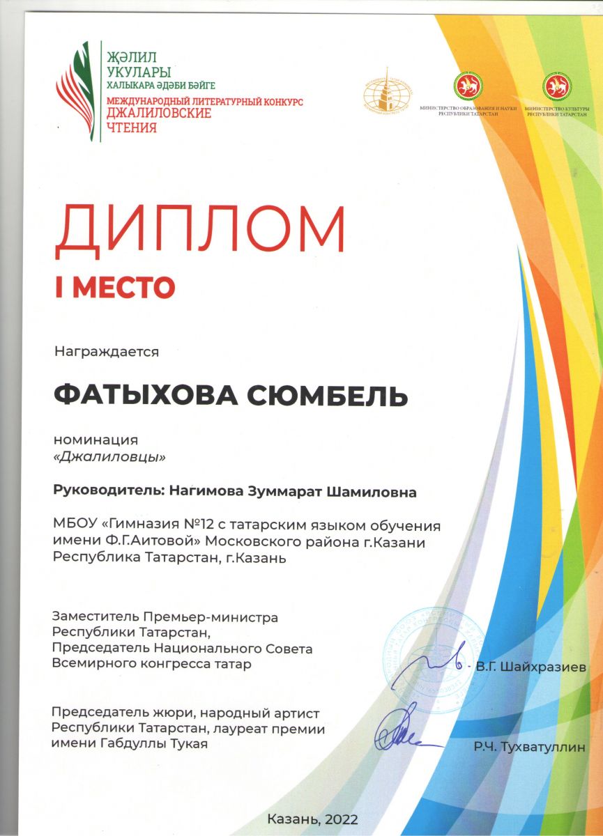- Международный конкурс "Джалиловские чтения", 2022/ Фатыхова Сюмбель - 1 место