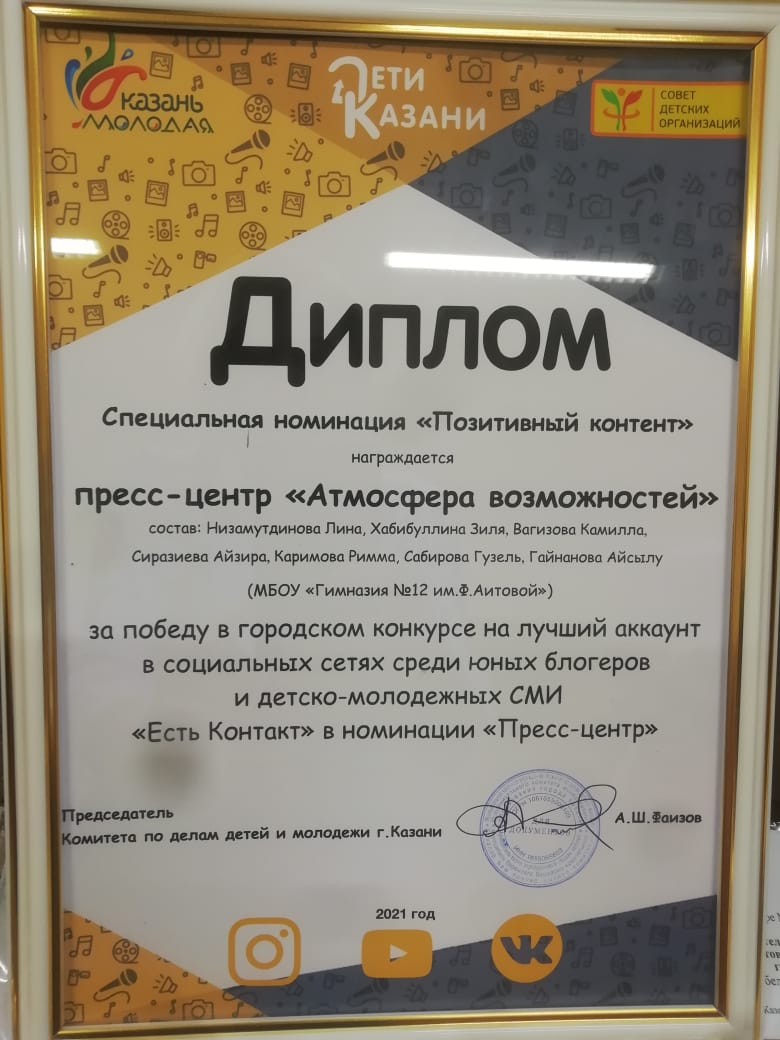 - Городской конкурс юных блогеров "Есть контакт"/ Кагирова Фируза - 3 место