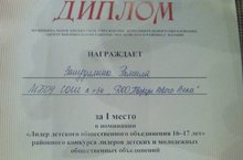 Поздравляем Загидуллина Рамиля, ученика 11А класса с 1 местом на районном этапе республиканского конкурса "Лидер года-2017".