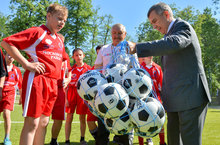 Сегодня учащиеся, посещающие пришкольный лагерь приняли участие в открытие спорт.площадкив в парке ДК Химиков.