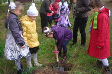 Сегодня учащиеся 1-х классов вместе с родителями и классными руководителями высадили "Аллею первоклассников"