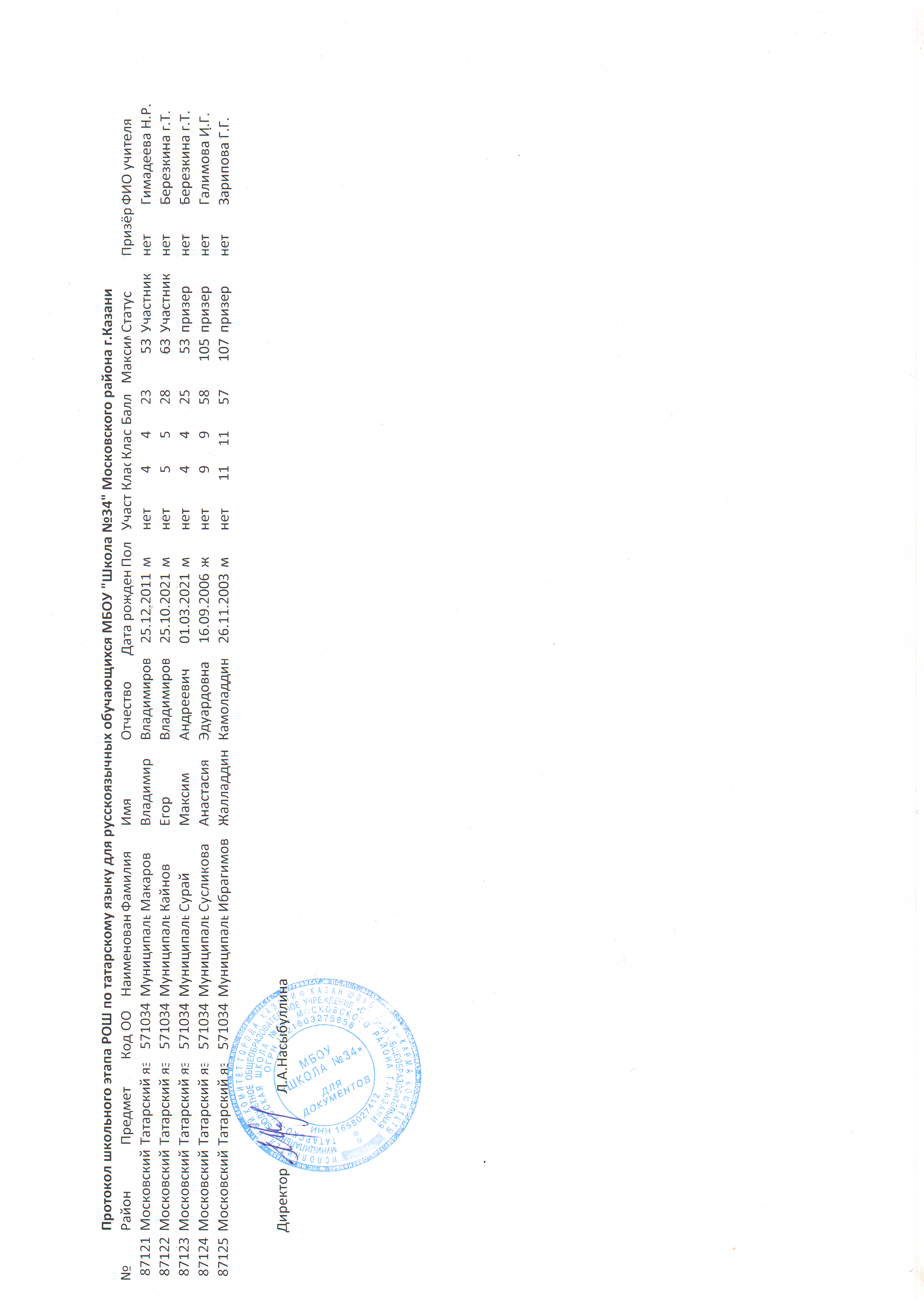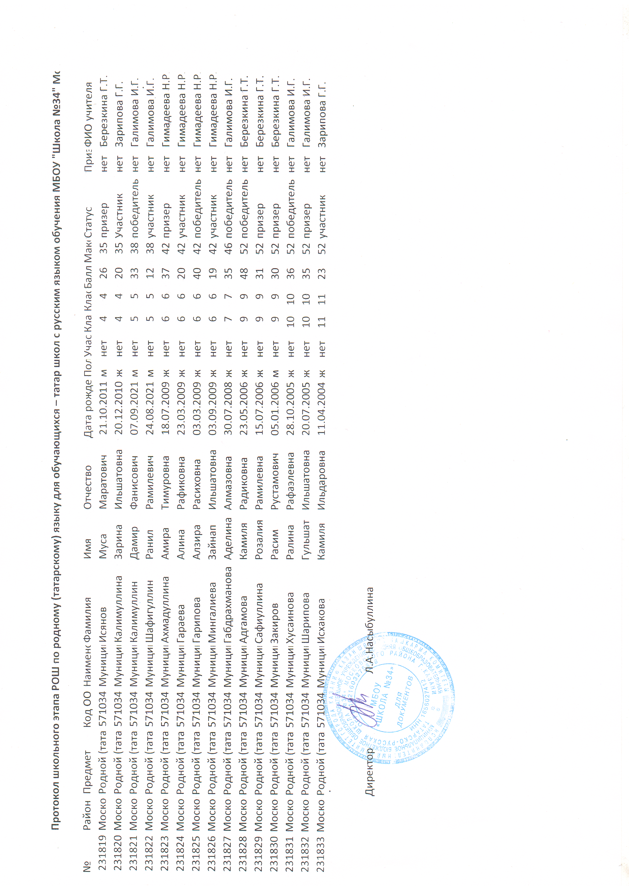 Протокол по родному (татарсокму) языку для обучающихя татар