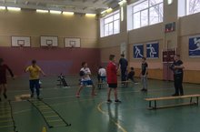 Космическая тренировка прошла у 6В и у 7В класса, юные космонавты выполняли упражнения с мячом , прыгали на скакалках, бегали на Вело-бегунке и качали пресс.