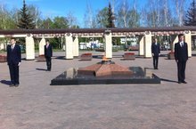 Учащиеся 8-х классов держали традиционную "Вахту памяти" у вечного огня в парке Победы.