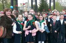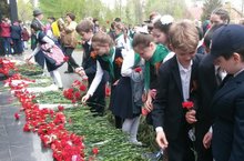 Сегодня ученики школы возложили цветы на мемориальный комплекс, посвященный Победе в Великой Отечественной Войне в парке Урицкого