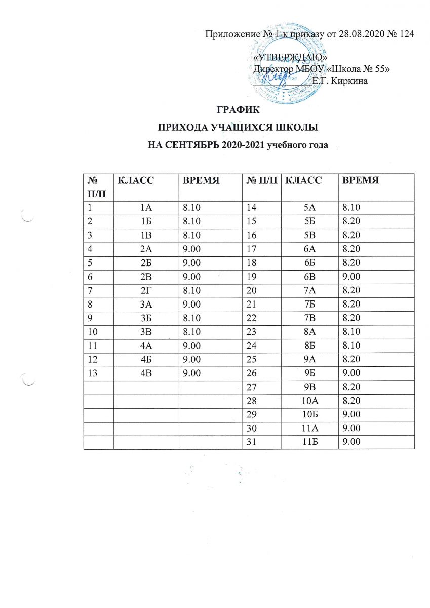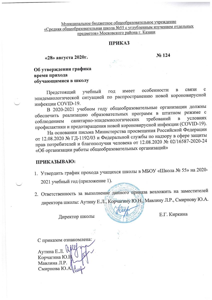 Приказ об утверждении графика времени прихода обучающихся в школу