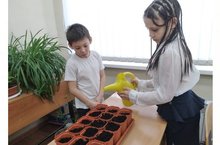 Они вместе со своим классными руководителями о посадили семена хвойных деревьев.