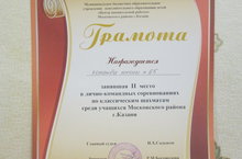 Поздравляем команду нашей школы, занявшую почетное II место в лично-командных соревнованиях по классическим шахматам среди учащихся Московского района г.Казани
