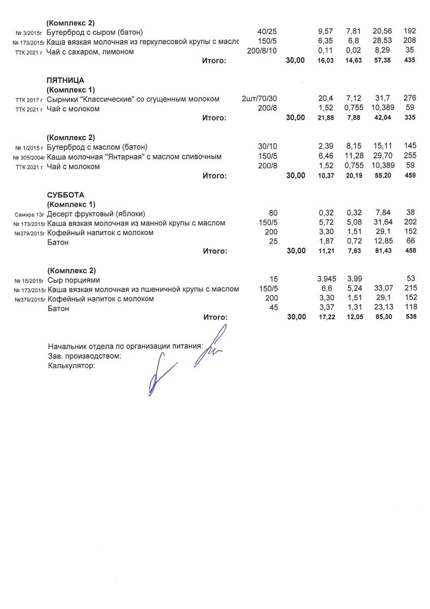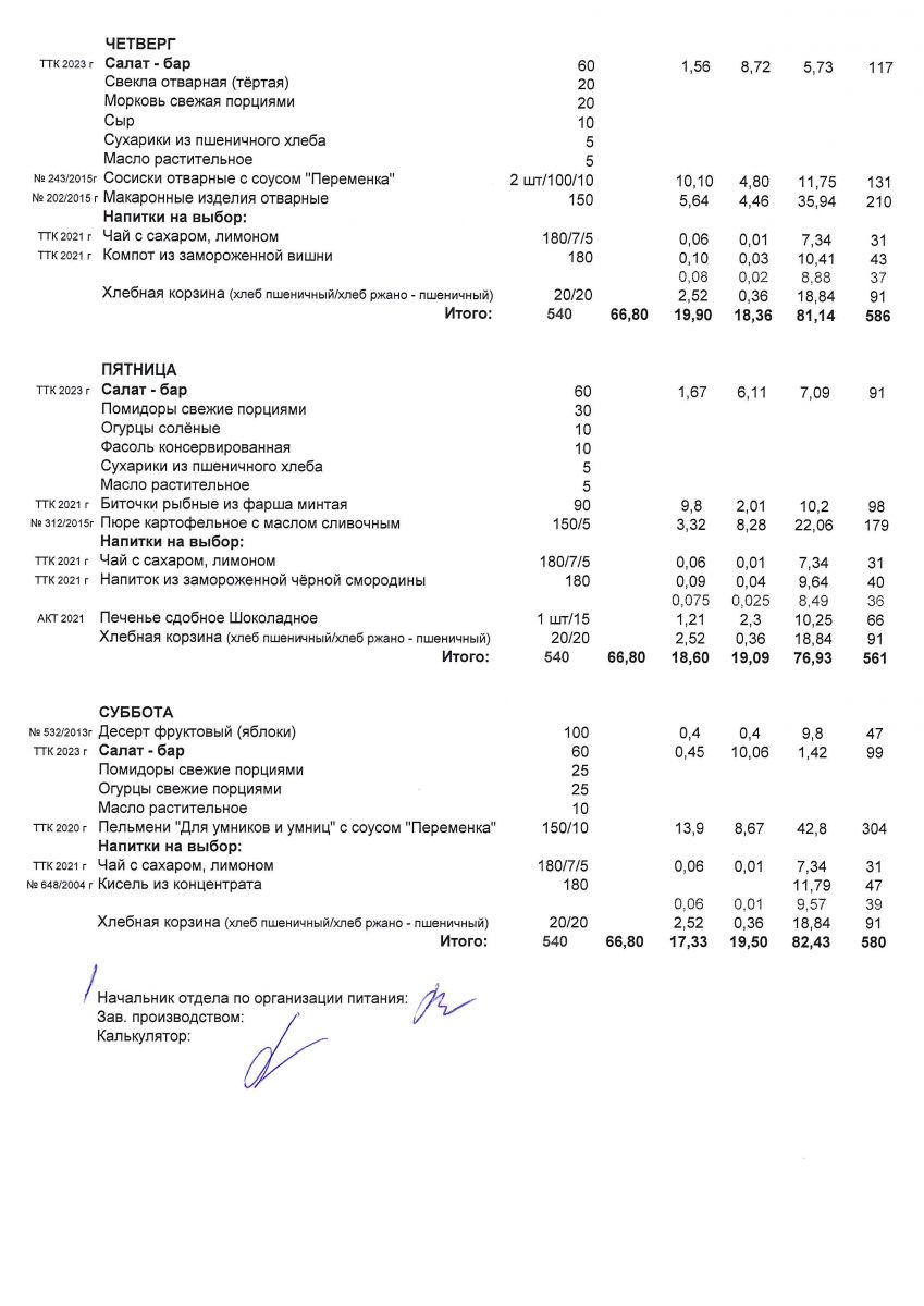 Меню для учащихся начальной школы с 23 по 28 ноября 2020 года. Пятница, суббота. Льготники