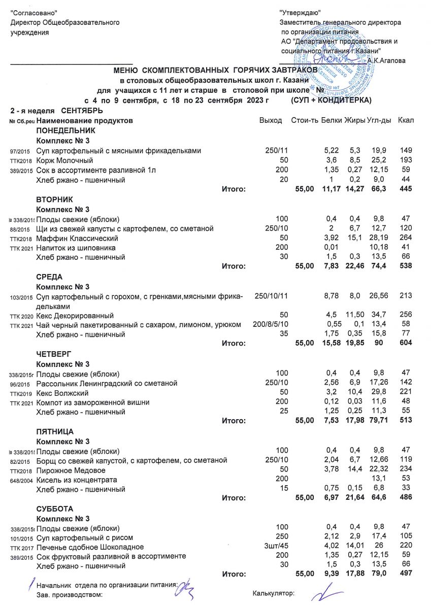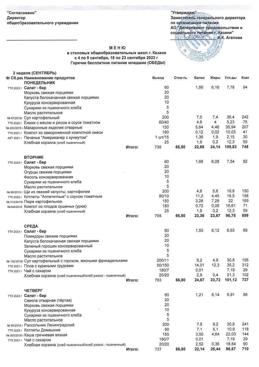 Меню с 4-9 и с 18-23 сентября