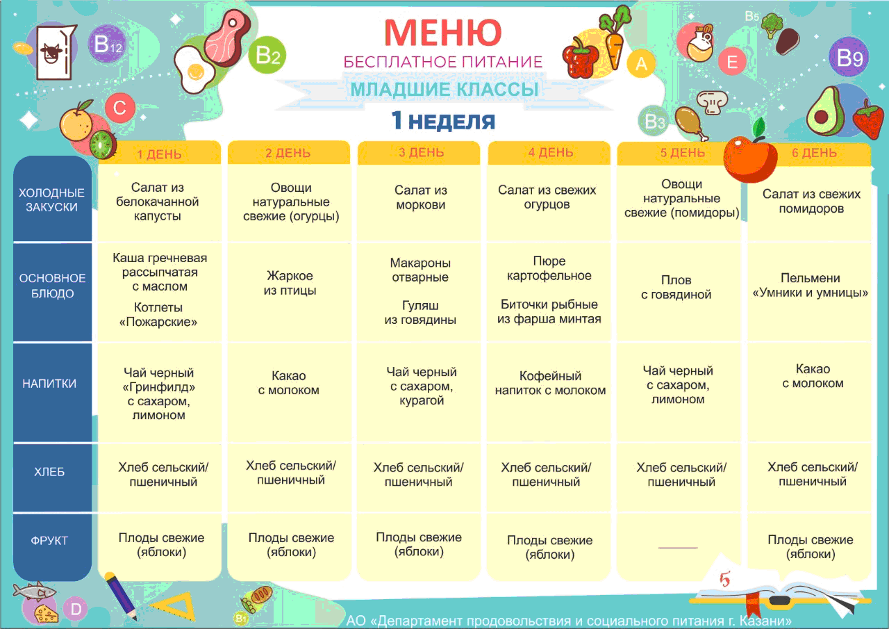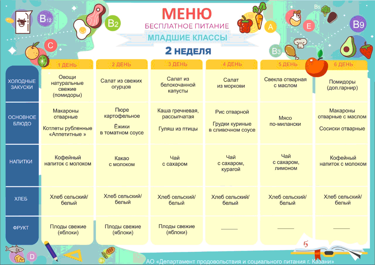 Меню для учащихся начальной школы представлено в разделе "food"