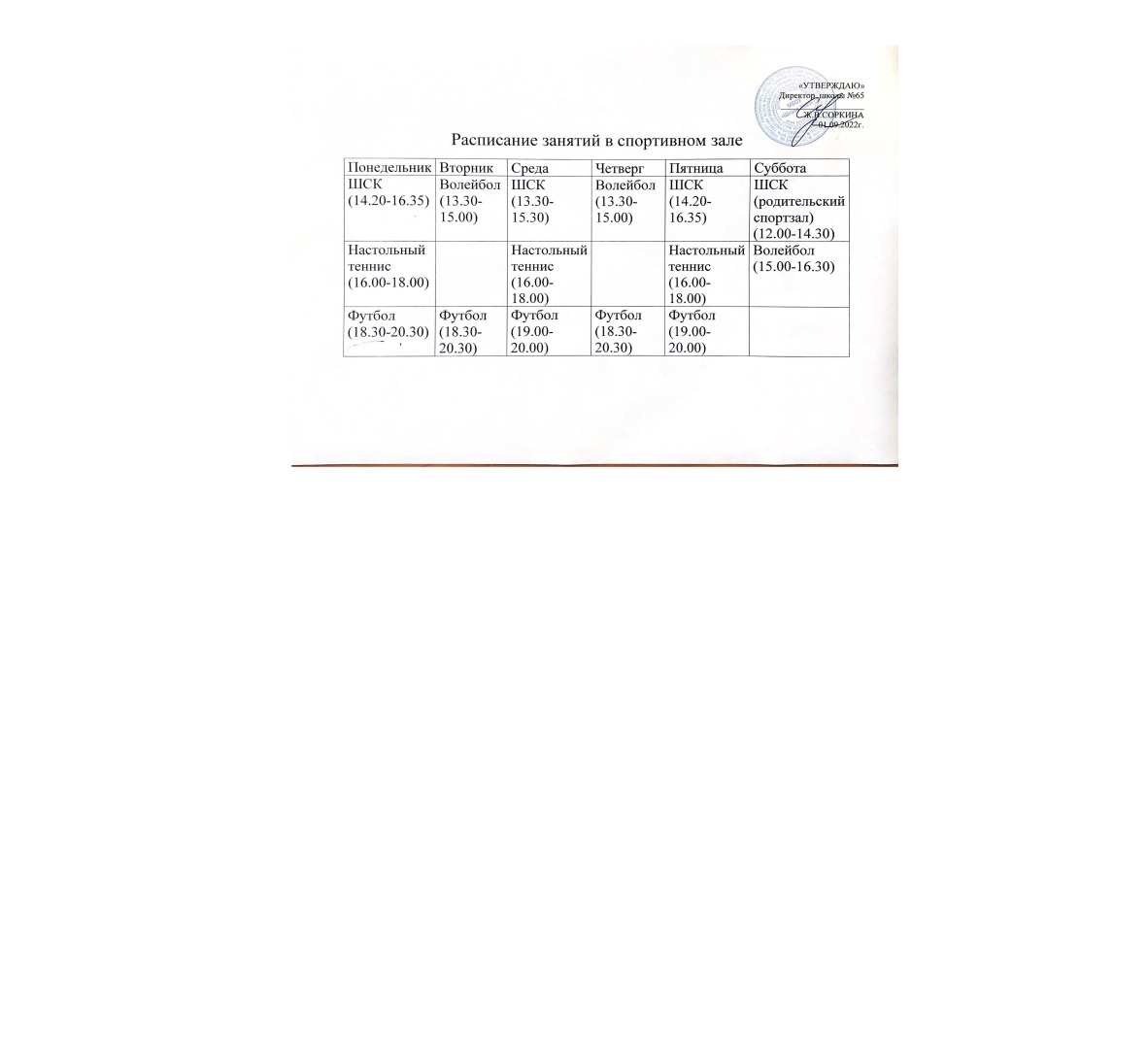 Расписание занятий школьного спортивного клуба «Драйв» 2022-2023 учебный год