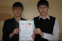 Победители первого тура республиканского конкурса "Эрудит-2011" -ученики 8б класса Хасаншин Айдар и Нурмухаметов Эдуард получили право участвовать во втором туре, который прошел 20 апреля в большом зале Академии наук РТ. Ребята награждены сертификатами участников конкурса.