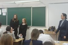 В рамках реализации проекта "Профориентационная среда" в гимназии проводятся встречи с представителями ссузов и вузов. Сеголня в гостях у 9-тиклассников были предстваители студенческого актива и преподаватель Казанского нефтефимического колледжа.